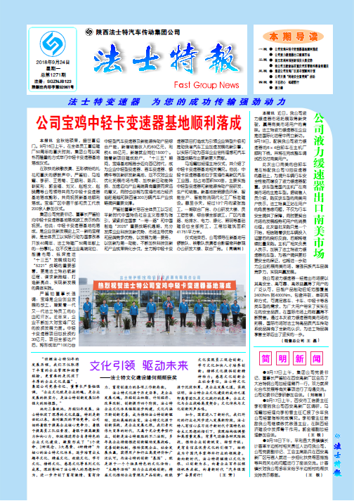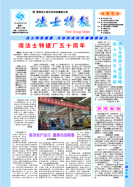 點擊量:5708“回顧法士特50年的發展歷程,我們不僅取得了豐富的企業管理和經營經驗,更重要的是沉淀了豐厚的企業文化底蘊”,集團公司黨委書記、董事長嚴鑒鉑強調,“企業文化