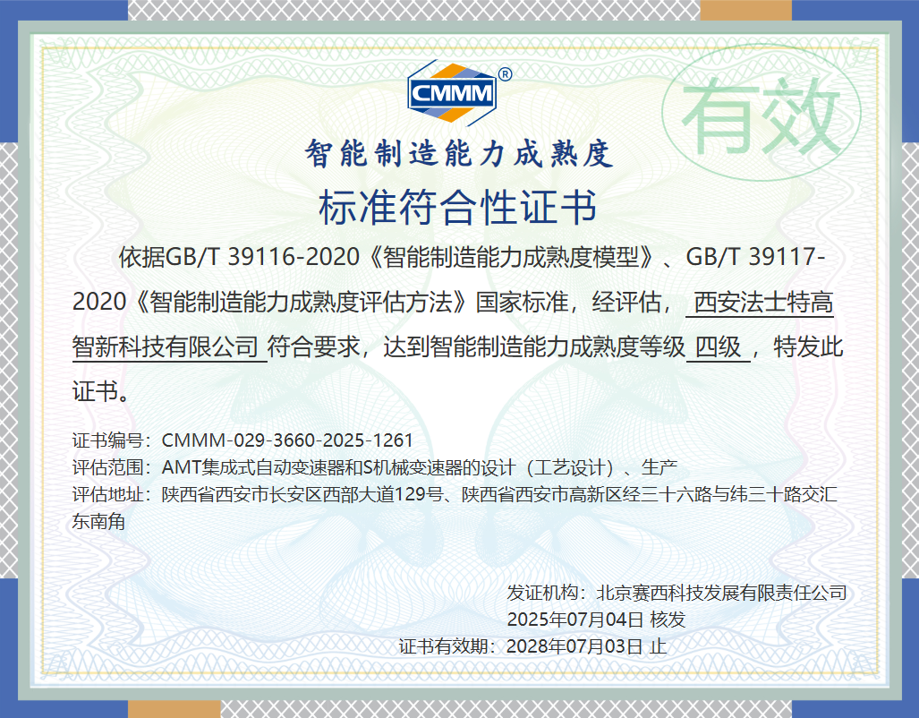 法士特通過智能制造能力成熟度四級認(rèn)證