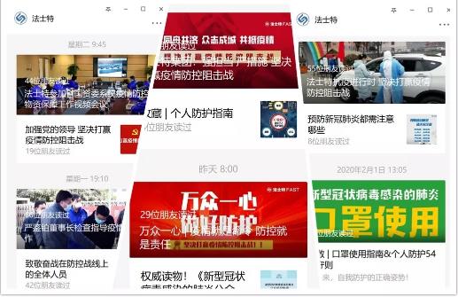 點(diǎn)擊量:2891一、利用“兩微”及時廣泛傳播防疫知識公司團(tuán)委及時響應(yīng)集團(tuán)黨委號召,立即行動,通過團(tuán)干部微信工作群和“法士特青年”微信公眾平臺及時轉(zhuǎn)發(fā)相關(guān)政策和防